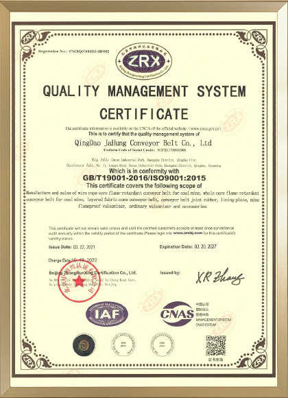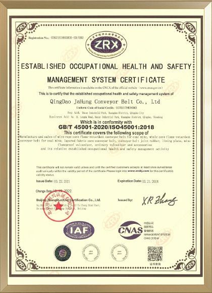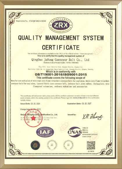 Qingdao Jahung is the famous supplier for rubber conveyor belt . Our factory is located in the beautiful city of Qingdao Industrial Park, with total investment of 100 million US dollar, it covers the area of 180000 square meters, have about 1200 workers, 120 technicians, annul output is about 50,000,000 ㎡. Current we have 2 factory in Qingdao . New factory is Jimo zone .